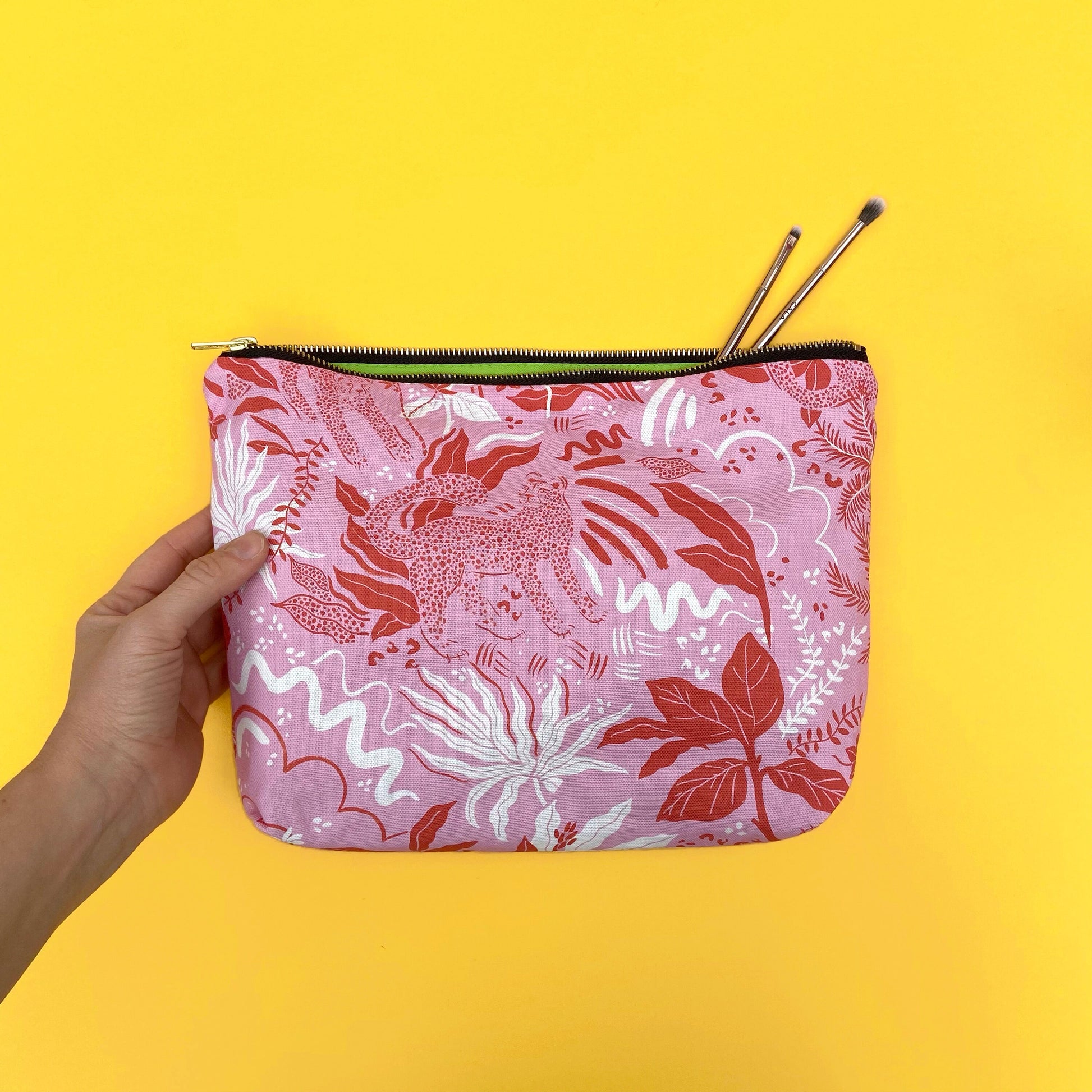 Beautiful high quality Wash/Makeup Bag featuring my original Pink Jungle design.