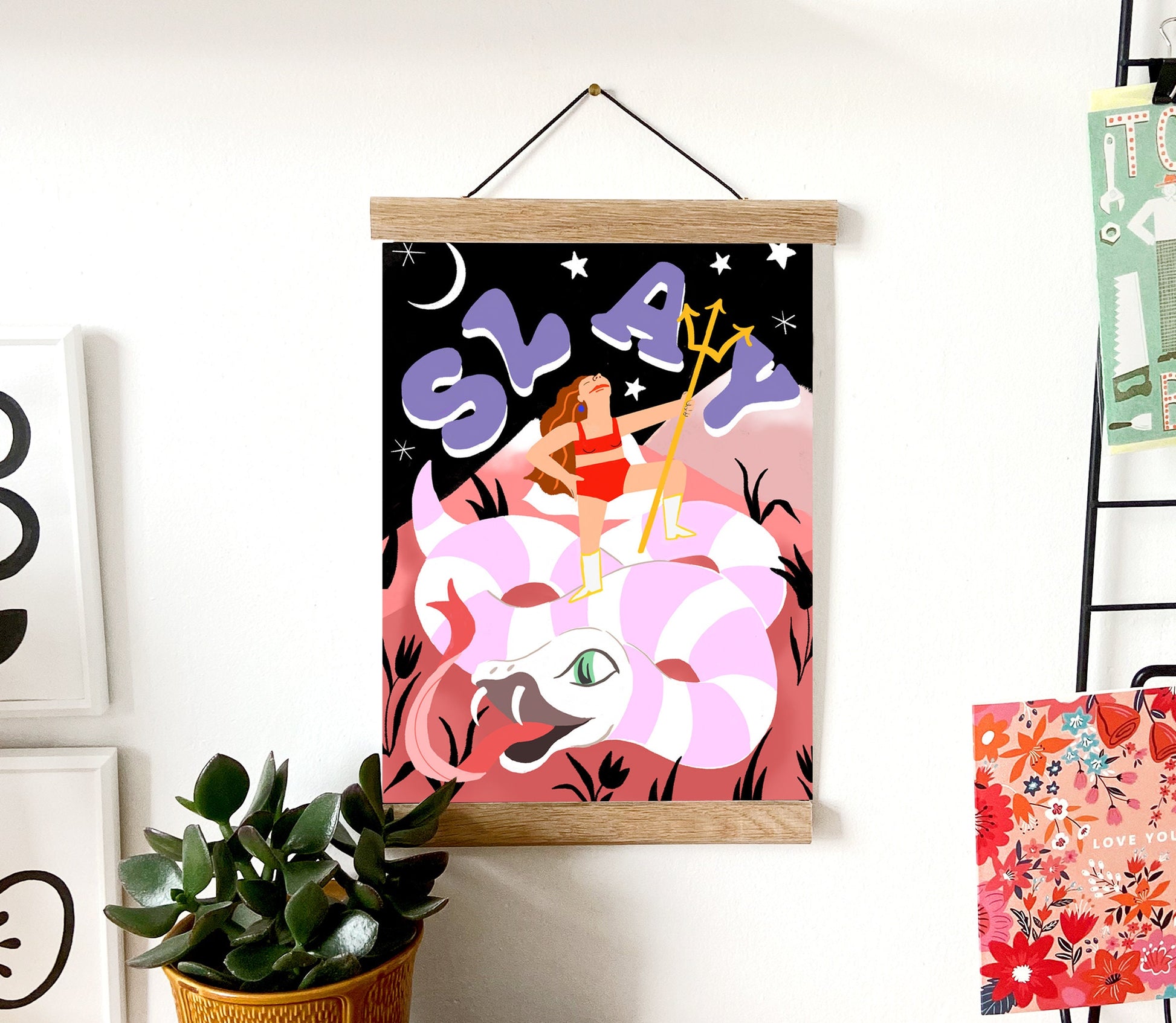 'Slay The Day' Strong girl Snake Giclee Print from an original painting by me!